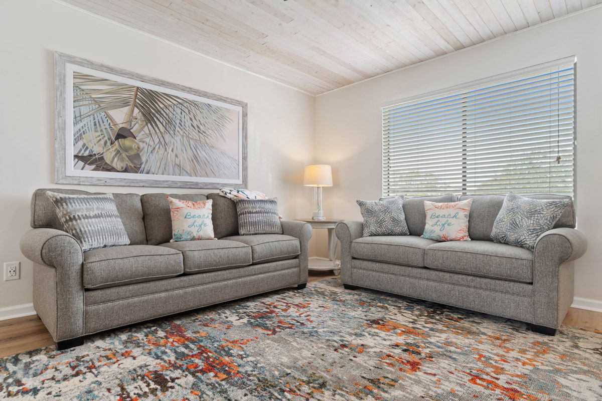 Sleeping up to 6 guests comfortably, all mattresses have been replaced and the sleeper sofa is brand new! A TV completes each room. There's a king bed in the master bedroom en suite which overlooks the pool, a queen bed in the guest bedroom en suite with a private balcony with a view to the Gulf, and a sleeper sofa in the living room. There is plenty of additional seating to enjoy the flat-screen TV or just relax! In addition, off the kitchen is a tucked-away desk and printer station (coming by 6/1/23) for those who just can’t break from work or if you want to print area attractions and maps!