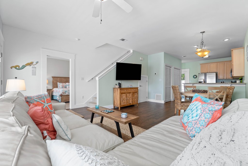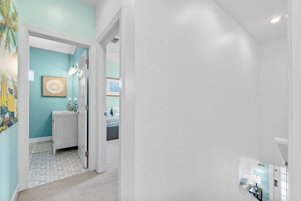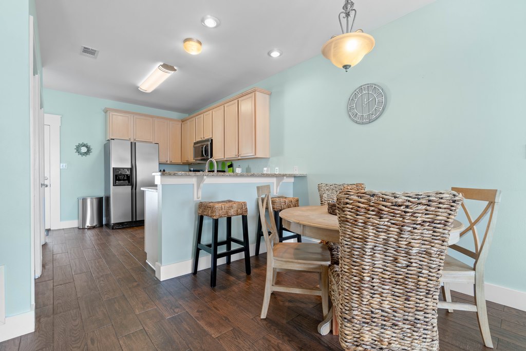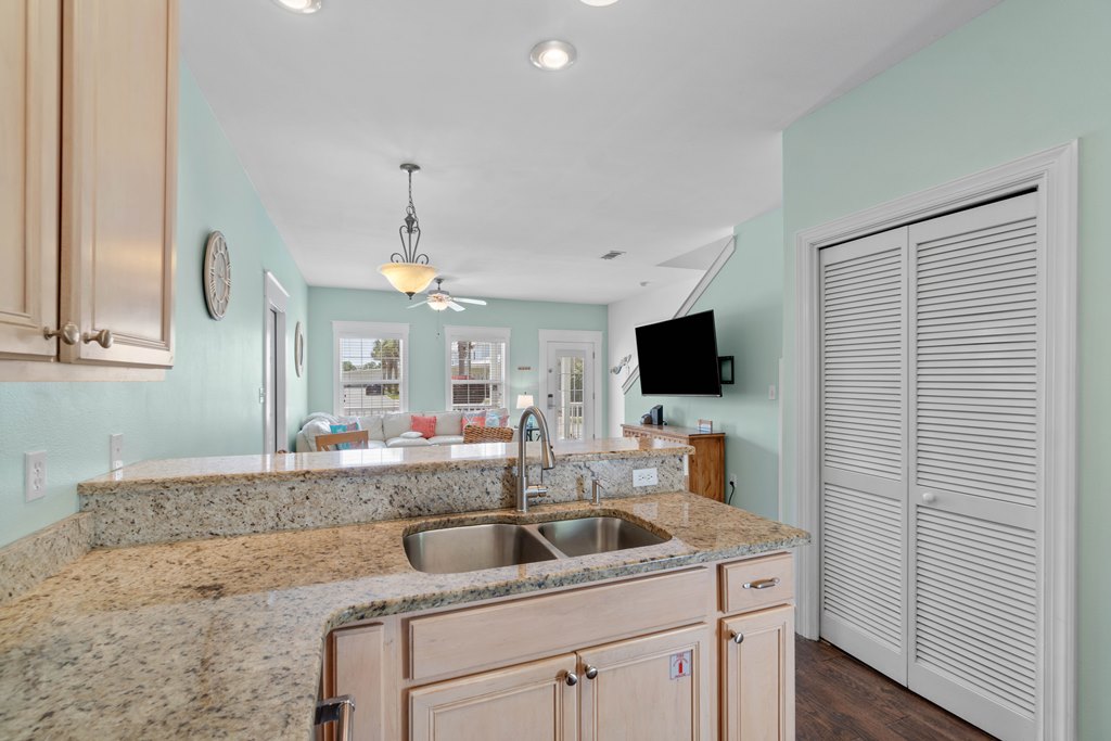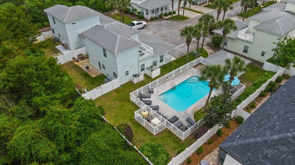 Beautiful newly renovated 2 story beach home w/balcony & attached garage located in a quaint, secluded 10 home community just a few blocks from the beach, bike path, restaurants and public beach access at Pompano Joe's. Walking distance to all the beach activities, yet tucked away in a quiet, peaceful cove, with a sparkling pool and lush, tropical landscaping making this beach home the perfect vacation home, permanent home or income property. Gorgeous new, wood-grain porcelain tile, new carpet, new paint and new granite countertops and sink. Kitchen has a large pantry, stainless steel appliances, breakfast bar and extra spacious custom cabinetry. Large master suite on the 1st floor has a master bath with a double vanity, huge walk in closet, separate water closet, garden spa tub and roomy separate shower. Upstairs are 2 roomy bedrooms and one full bath. One bedroom has a large walk-in closet and French doors leading to its own walk-out private sun deck/balcony that overlooks the pool. Extra deep attached garage, to keep you dry on rainy days and your car cool in summer, has overhead storage for surf/paddle boards or beach toys and washer and dryer hookups. Extra private parking in front of home accommodates 3 extra vehicles. Private, fenced-in backyard also has a patio perfect for BBQ's and an outdoor shower with hot and cold water. All landscaping and pool maintenance is taken care of for you. The home is constructed with solid hardy plank siding, a metal roof and has custom storm shutters to weather any storm. Subdivision is situated high and dry and not in a flood zone. Recent rains that flooded many neighborhoods in Destin and Miramar Beach did not affect this property or any of the homes in or around this subdivision. Additionally, Walton County will be constructing a sidewalk, spring of 2015, along Holiday Rd from Hwy 98 to Scenic Gulf Drive for safe, convenient access to the beach. 1YR HOME WARRANTY INCLUDED.